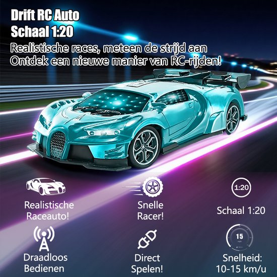 1:20 Simulatie RC Raceauto - Radiografisch Bestuurbare met 3D LED-Verlichting & 15 km/h Snelheid - Klaar om te Spelen - Voor Kinderen 3-7 jaar - Binnen en Buiten Speelgoed - Groen