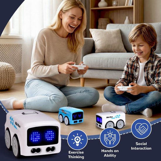 2.4G Afstandsbediening Slimme Bus (Blauw) - Lijnvolgend, Gebaarvolgend & Ontwijkend, Educatief Interactief Speelgoedauto voor Kinderen