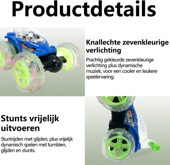 Geef het ultieme speelplezier cadeau! De supercoole RC Stuntauto laat kinderen (3+) hun ogen uitkijken. Dit is niet zomaar een autootje, maar een echte stuntkampioen!
