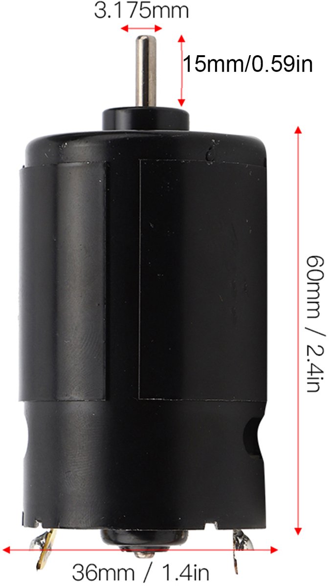 Staat: 100% gloednieuw Artikeltype: Geborstelde motor Materiaal: Metaal Optioneel type: 12T, 21T, 29T, 35T Maat: 550 Kleur: Zwart Asdiameter: D-as 3,175 mm Uitgaande aslengte: ca. 15 mm / 0,6 inch Buitendiameter: ca. 36 mm / 1,4 inch Lichaamslengte: ca. 60 mm / 2,4 inch Afstand van montagegat: ca. 25 mm / 1 inch Schroefgat: ca. 3 mm / 0,1 inch Geschikt voor 4-serie automodel Geschikt voor 6-serie automodel 12T Geen belasting Maximale efficiëntie Maximaal uitgangsvermogen Rotor geblokkeerd Stroom (A) 3 14,4 36,2 70 Efficiëntie (%) 73 51 Uitgangsvermogen (W) 78 137 RPM 22500 18600 112500 Koppel (G.CM) 410 1190 2370 Spanning (V) 7,4 V Temperatuur -10-50 ℃ 21T Geen belasting Maximale efficiëntie Maximaal uitgangsvermogen Rotor geblokkeerd Stroom (A) 1 7 24,7 48,3 Efficiëntie (%) 77 49,5 Uitgangsvermogen (W) 40 91 RPM 12900 11300 6450 Koppel (G.CM) 350 1370 2730 Spanningen (V) 7,4V Temperatuur -10-50℃ 29T Geen belasting Maximale efficiëntie Maximaal uitgangsvermogen Rotor geblokkeerd Stroom (A) 1 6,3 20 39,1 Efficiëntie (%) 72,8 47,8 Uitgangsvermogen (W) 34 71 RPM 10500 9050 5250 Koppel (G.CM) 370 1320 2630 Spanningen (V) 7,4V Temperatuur -10-50℃ 35T Geen belasting Maximale efficiëntie Maximaal uitgangsvermogen Rotor geblokkeerd Stroom (A) 0,6 3,8 12,5 24,3 Efficiëntie (%) 76,1 49,7 Uitgangsvermogen (W) 22 46 RPM 7900 6830 3950 Koppel (G.CM) 310 1130 2260 Spanningen (V) 7,4V Temperatuur -10-50℃