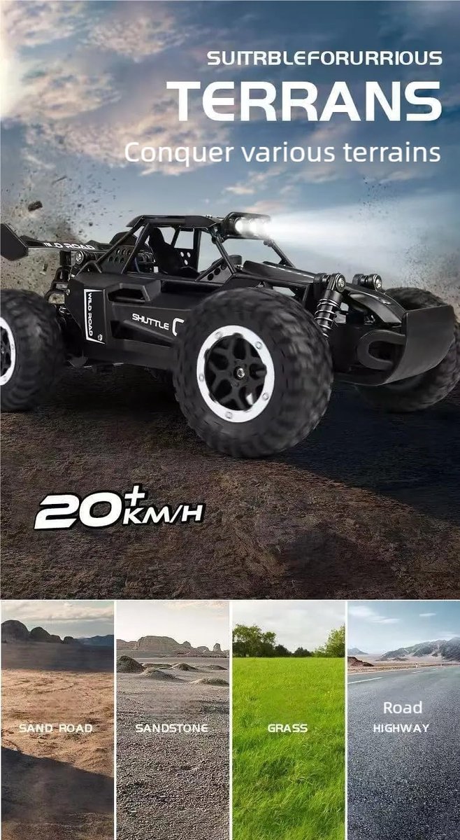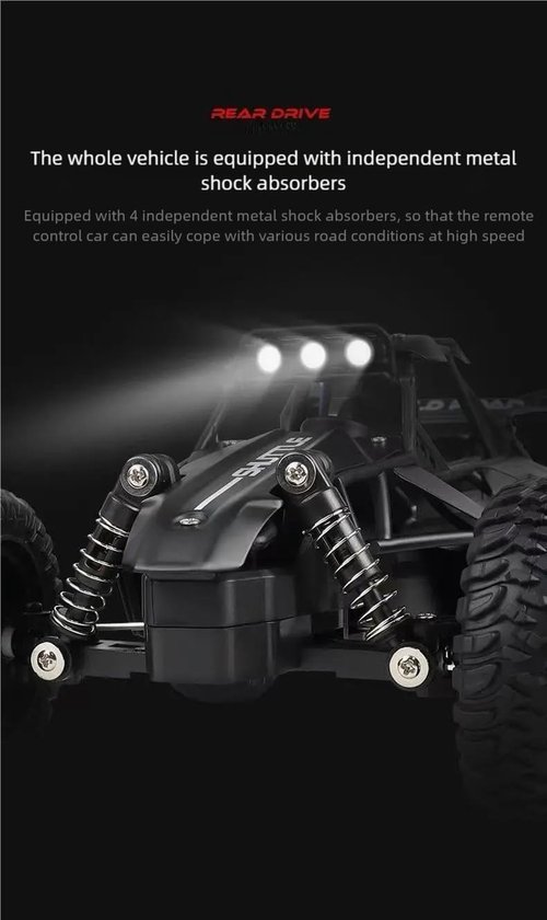 Dankzij de 2,4GHz-afstandsbediening reageert hij snel en ondersteunt hij meerdere voertuigen tegelijk.
