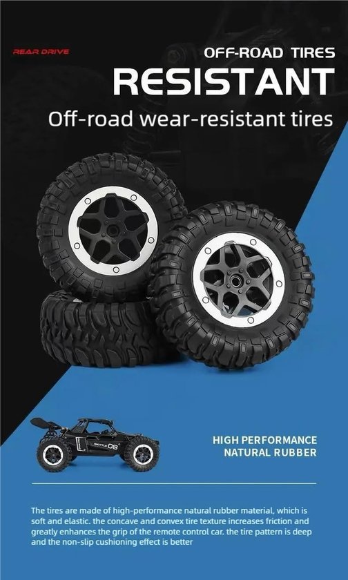 Uitgerust met professionele offroad-banden behoudt hij uitstekende grip, zelfs op uitdagend terrein.