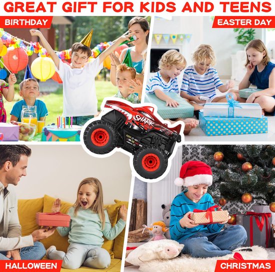 - Gift for Boys and Girls - This rc shark monster truck is perfect for any occasion - birthdays, anniversaries, farewell, Halloween, Thanksgiving, Christmas and New Year. With endless possibilities for imaginative play, it's sure to bring smiles to kids' faces. It will be a great gift for boys and girls.