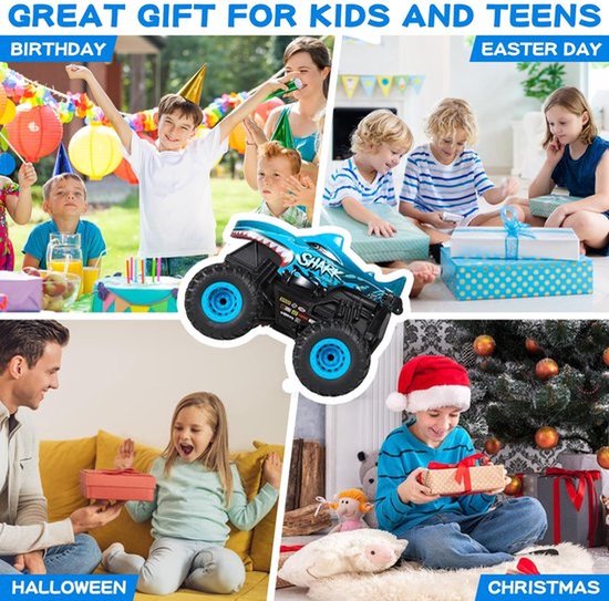 - Gift for Boys and Girls - This rc shark monster truck is perfect for any occasion - birthdays, anniversaries, farewell, Halloween, Thanksgiving, Christmas and New Year. With endless possibilities for imaginative play, it's sure to bring smiles to kids' faces. It will be a great gift for boys and girls.
