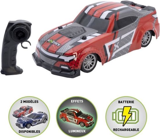 EXOST - FLASH RACER ASST 2.4Ghz - Schaal 1:18 - Flash Racer - De supersnelle, lichtgevende racewagen die alles op zijn pad verlicht - Schaal 1:18 - 2,4Ghz-technologie - Bereik van 25 m - Snelheid: 15 km/u - Auto met oplaadbare batterij (USB-kabel meegeleverd), 2 x AA-batterijen voor de afstandsbediening (niet meegeleverd) - Verkrijgbaar in twee kleuren - Vanaf 5 jaar.