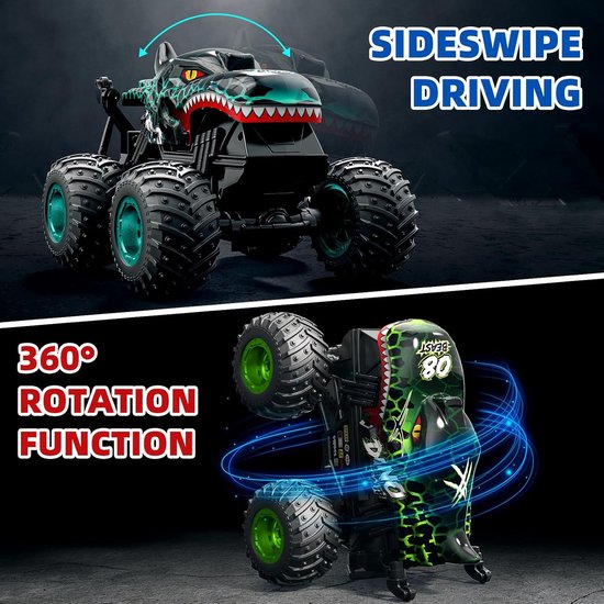 [Snelle 360° Spinning Stunts] Uitgerust met een krachtige borstelmotor kan de op afstand bestuurbare truck snelheden tot 20 km/u bereiken en moeiteloos uitdagende manoeuvres uitvoeren, zoals rollen en spins. Of het nu op tapijt, beton of een professionele racebaan is, hij is wendbaar genoeg voor binnen- en buitengebruik en biedt kinderen eindeloos speelplezier.