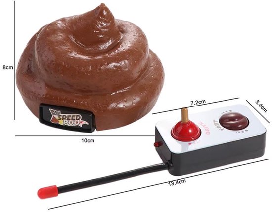 Zorg voor lachsalvo’s met deze Speed Poo: een op afstand bestuurbare nep-drol die kan rijden én realistische scheetgeluiden maakt. Dankzij de compacte afstandsbediening bepaal jij wanneer hij beweegt of een geluid laat horen. Ideaal voor grappige grappen op feestjes, verjaardagen of als humoristisch cadeau. De poep heeft een realistische uitstraling en stevige behuizing. Eenvoudig in gebruik en geschikt voor binnengebruik. Zet ’m neer, activeer de afstandsbediening en verras iedereen met dit hilarische gadget.
