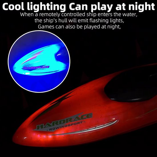 Uniek zijn de ingebouwde LED-lichten, die automatisch oplichten zodra de boot het water raakt – perfect voor spelen in de avond. Met zijn compacte formaat, opvallende design en sterke prestaties is deze RC boot geschikt voor zowel kinderen als volwassenen die houden van actie en snelheid op het water.