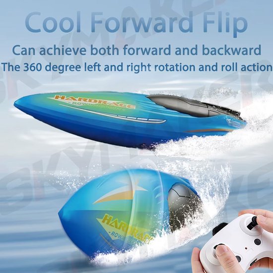 Deze mini stunt RC speedboot staat garant voor spectaculaire waterpret. Dankzij de krachtige mini brushed motor vaart de boot snel en soepel vooruit én achteruit. Met de 2.4GHz afstandsbediening heb je stabiele controle zonder storing, ideaal voor gebruik op vijvers en zwembaden.