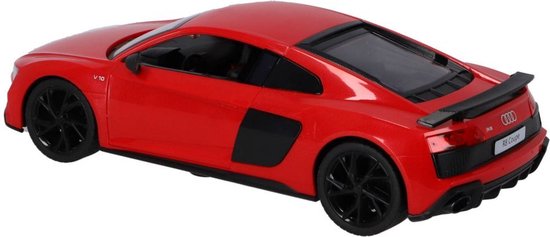 Rode radiografisch bestuurbare Audi R8 op schaal van 1:14. Max snelheid 12 km/u. Bereik 30 meter. Werkende lichten. Geschikt voor kinderen vanaf 3 jaar.
