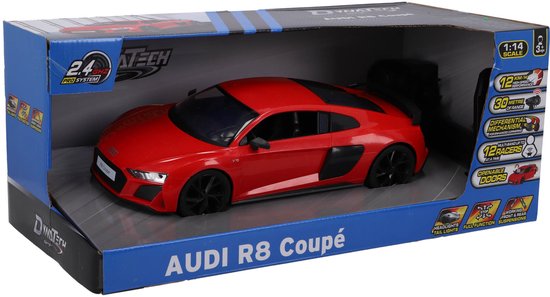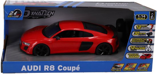 De radiografisch bestuurbare Audi R8 Coupé heeft afmetingen die overeenkomen met de echte auto en is gemaakt van hoogwaardige materialen voor duurzaamheid en realisme.