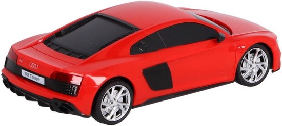 De radiografisch bestuurbare Audi 1:24 R8 Coupé in de kleur rood biedt eindeloos speelplezier voor zowel kinderen als volwassenen. Met zijn gedetailleerde ontwerp en realistische uitstraling zal deze auto zeker de aandacht trekken van autoliefhebbers en modelbouwers.