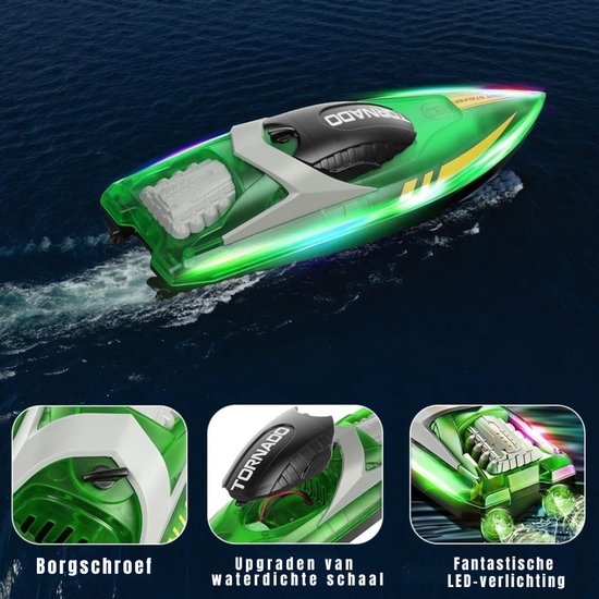 Ben je het zat om saaie middagen thuis door te brengen, terwijl je kinderen of vrienden zich vervelen? Met de Bestuurbare Boot, Groen verander je elk watermoment in een spannend avontuur vol actie en plezier. Dankzij de op afstand bestuurbare functie en de LED-verlichting beleef je urenlang plezier, zelfs als het donker wordt. Dit is de perfecte manier om herinneringen te creëren die je nooit meer vergeet.