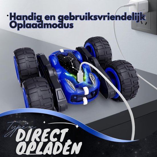Uitgerust met een sterke motor, kan deze RC auto 360° spins en 180° flips maken. Van snelle drifts tot coole stunts, deze auto levert een opwindende en uitdagende rijervaring.