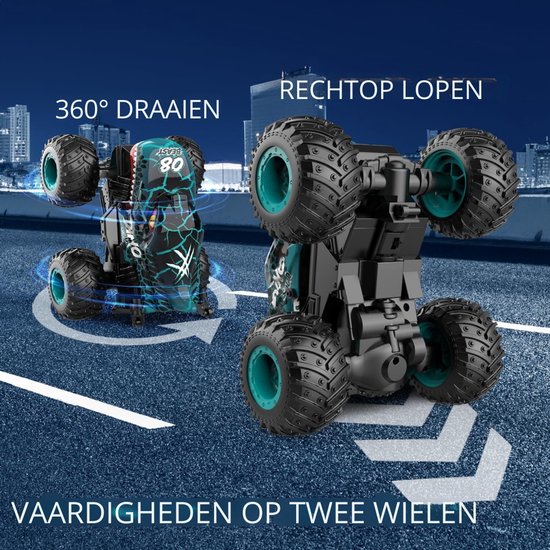 Kleine bestuurders kunnen met deze RC monster truck indrukwekkende stunts uitvoeren, zoals 360° draaien, rechtop rijden, driften en obstakels overwinnen. Deze spectaculaire bewegingen zorgen voor maximale actie en laten kinderen zich echte stuntdrivers voelen.
