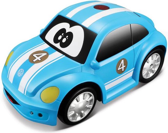 Door de VW New Beetle Easy Play R/C van BBJunior kunnen al kleine jonge bestuurders hun eerste ritten maken. Door de kindervriendelijke, ronde afstandsbediening met twee grote knoppen kan de Beetle kinderlijk eenvoudig vooruit en achteruit bewegen. Bijzonder handig is de geïntegreerde automatische ontbering, die ervoor zorgt dat de kleine blauwe flitzer obstakels vakkundig uitwijkt en zo de stoelpoten en de zenuwen van de ouders spaart. De speelgoedauto is geschikt voor kinderen vanaf 18 maanden en bevordert spelenderwijs de fijne motoriek, creativiteit, fantasie en handoogcoördinatie van de kinderen.