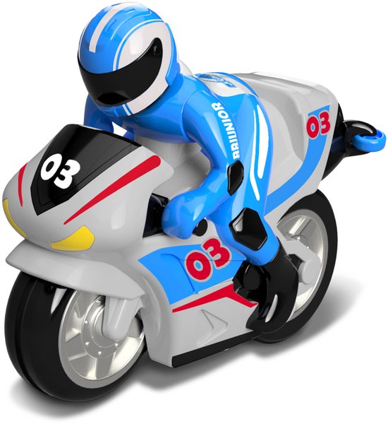 BB Junior - First RC Motorcycle - Motor met piloot en stuurafstandsbediening - Blauwe race.