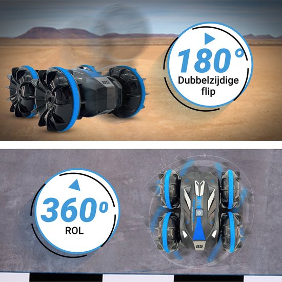 Voer indrukwekkende 360° spins en flips uit. Dankzij dubbelzijdig rijden ga je direct verder na een crash.
