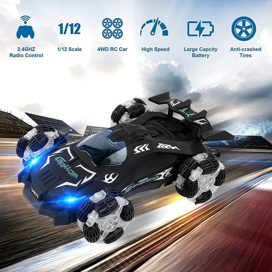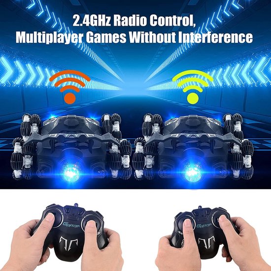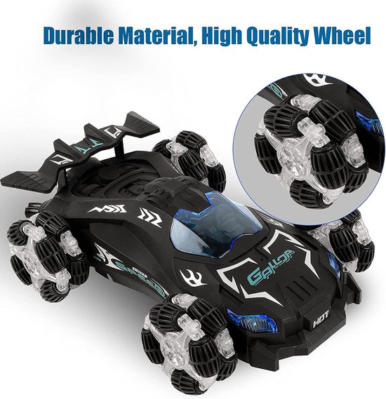 Deze radiografisch bestuurd auto heeft een jet-/spuitapparaat aan de achterkant. Gebruik het bijgeleverde watertoevoegingsapparaat om water toe te voegen, druk vervolgens op de spuitknop op de afstandsbediening – en de achterkant van de auto begint met spuiten, met een spectaculair effect dat lijkt op jetversnelling! Bij een volle watervulling geniet je van 6 minuten non-stop spuitpret.