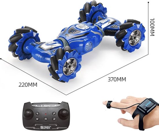Met de handcontroller bestuur je met enkele handgebaren de auto van links naar rechts en vooruit en achteruit. Ook transformeert de stuntauto met een simpel handgebaar (of een druk op de controller), van platte racer – keihard rijden over een onverharde weg – naar hoge off-roader, waarmee je kunt stunten over obstakels en onverhard terrein. Ook helemaal top aan deze stuntauto is de verlichting aan de voor- en zijkant. In het donker geeft dit een mooi effect.