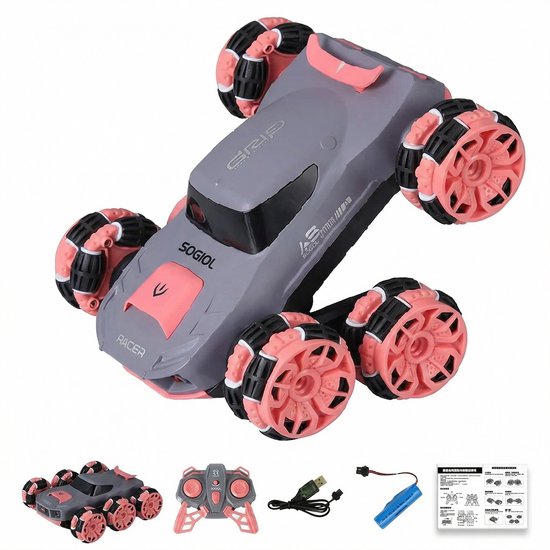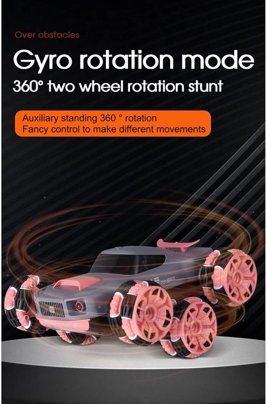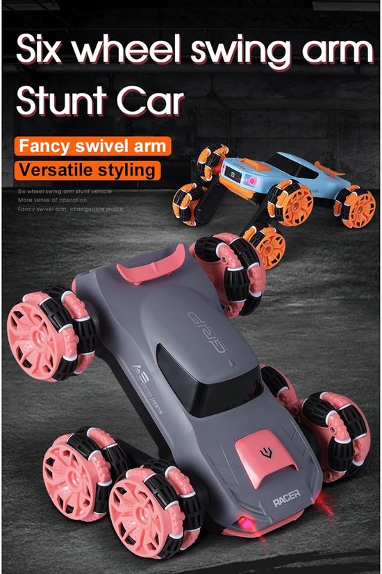 Bestuurbare Auto - Stuntauto 6 Wielen - RC Auto Zeswielige Stuntauto met LED-verlichting, 360° Draaiend, Geluid en Licht - Afstandsbestuurbare Auto Buiten - Voor Jongens & Meisjes - Roze