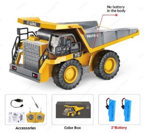 RC Dumptruck – Afstandsbediening Auto – Speelgoedvoertuig – 9 Kanalen – 30 min speeltijd – Gebruiksklaar geleverd
