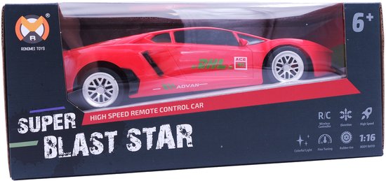 Vrooooom, lights out and here we go. Met deze geweldige sportauto met Remote Control beleef je urenlang raceplezier. De afstandsbediening heeft 4 kanalen. Dat betekent dat je voouit, achteruit, links en rechts kunt rijden en sturen. Heeft je sportauto een afwijking in de voorwielen? Geen probleem, de voorwielen kun je op de onderkant van de auto bijstellen. Voor extra beleving beschikt de auto ook over koplampverlichting tijdens het rijden.