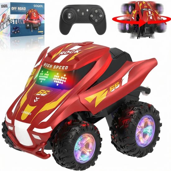 Bestuurbare RC Auto - Lopende en dansende Rc-auto - Rc-auto met kleurrijke lichtspray - All Terrain Drift Stunt Auto met 360° Draaien - muzikale Rc-auto - stunt Rc-auto - Rood