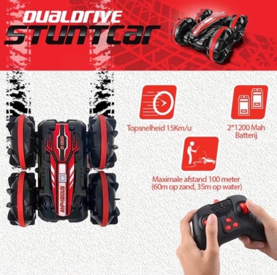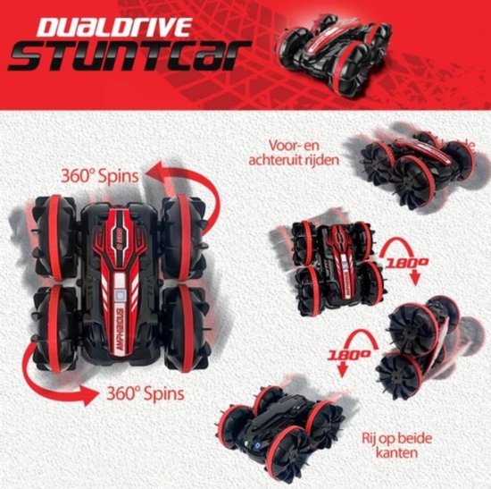 Voer verbluffende stunts uit. Maar pas op, voor je het weet willen de vriendjes nooit meer naar huis met deze coole stunt auto die niet alleen 360 graden kan draaien, maar ook gave 180 graden flips kan maken. En over de kop gaan om daarna weer gewoon door te rijden. Hoe gaaf is dat!