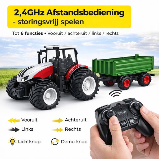 Bolke tractor speelgoed - speelgoed tractor - tractor met aanhanger - bestuurbare auto - bestuurbare auto voor jongens - bestuurbare tractor / trekker met afstandbediening