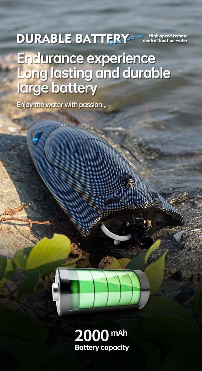 Gebouwd om lang mee te gaan -- De romp van onze borstelloze RC-boot is gemaakt van origineel ABS-materiaal, waardoor hij goed blijft drijven. Deze zijn vervaardigd uit een mix van koolstofvezel, wat superieure prestaties biedt. De 2,4 GHz afstandsbediening