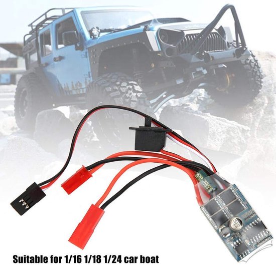 Enhance the performance of your 1/16, 1/18, or 1/24 scale car or boat with this bidirectional flow control brush ESC. The digital programming circuit board ensures smooth operation and reliability.