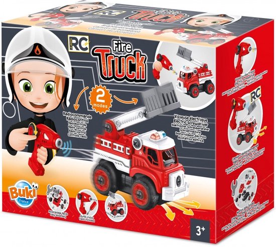 De Buki brandweerwagen zet je eenvoudig in elkaar door de stappen te volgen van de meegeleverde instructies. Het benodigde gereedschap wordt meegeleverd in de verpakking. Sterker nog, de boor kun je gebruiken als afstandsbedieining!