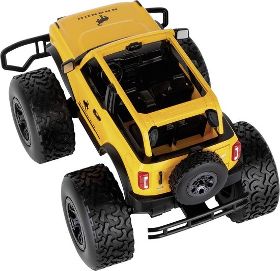 De Carrera RC Ford Bronco wordt volledig rijklaar geleverd, inclusief oplaadbare batterij, afstandsbediening, USB-oplaadkabel en batterijen. Dankzij de spatwaterbescherming en de digitale proportionele 2,4 GHz-besturingstechniek navigeer je soepel door elke bocht. De krachtige 6,4V 900 mAh LiFePo4-accu garandeert tot 20 minuten rijplezier met een topsnelheid van 15 km/u. Bestel vandaag nog via en ervaar de vrijheid van echt offroad-rijden met kwaliteit en service die je mag verwachten.