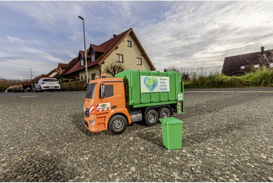 De LED-verlichting en realistisch motorgeluid kunnen gemakkelijk via de zender worden bediend en de hoorn voegt nog meer authenticiteit toe. Je kunt het afval gemakkelijk transporteren met de afvalschroeftransporteur en de container kan via de zender worden geleegd dankzij de hefboomfunctie.