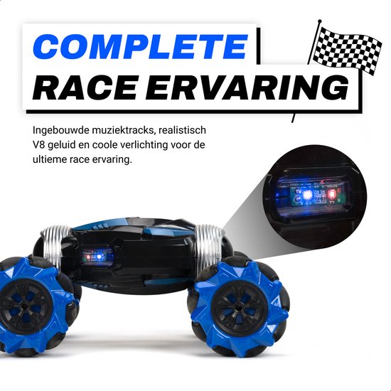 De stuntauto is zowel geschikt voor binnen- als buiten, op de weg en off-road.