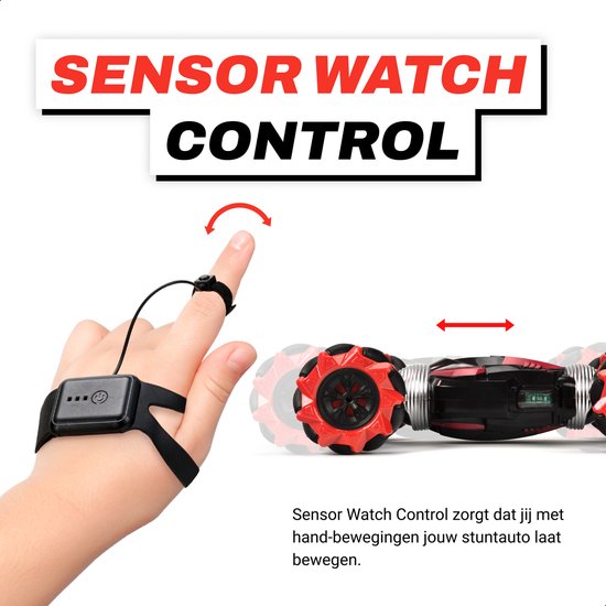 Met de handcontroller bestuur je met enkele handgebaren de auto van links naar rechts en vooruit en achteruit. Ook transformeert de stuntauto met een simpel handgebaar (of een druk op de controller), van platte racer – keihard rijden over een onverharde weg – naar hoge off-roader, waarmee je kunt stunten over obstakels en onverhard terrein. Bij het starten en rijden van de auto hoor je het gave V8 geluid. Wil je andere geluiden horen, dan kun je kiezen uit verschillende muziektracks. Ook helemaal top aan deze stuntauto is de verlichting aan de voor- en zijkant. In het donker geeft dit een spectaculair effect.