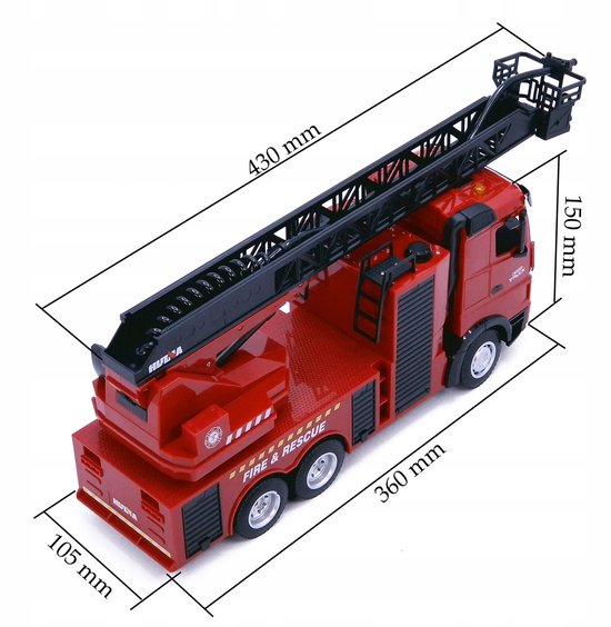 Realistische RC-brandweerwagen met uitschuifbare ladder - Dit grote model van een reddingsvoertuig, geïnspireerd op echte brandweerwagens, heeft een gedetailleerde cabine, een reddingsladder en uitrusting, waardoor het spelen doet denken aan echte brandbestrijdingsoperaties.