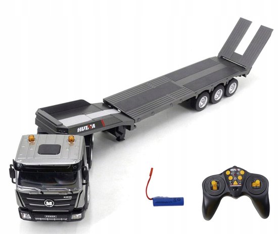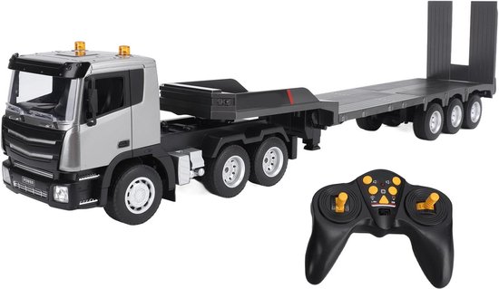 Deze RC vrachtwagen met dieplader is perfect voor jonge liefhebbers van grote transportvoertuigen. De realistische truck is uitgerust met een lange oplegger waarmee kinderen verschillende speelgoedvoertuigen kunnen vervoeren.