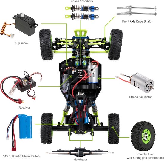 - Krachtige 540 geborstelde motor: Levert indrukwekkend koppel en prestaties voor soepel klimmen en racen.