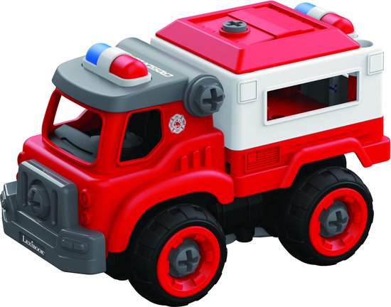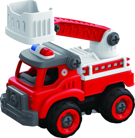 *Monteer de onderdelen om de brandweerwagen van uw dromen te bouwen!*Deelnemen aan de bouw van drie verschillende brandweerwagens, montage en demontage met één elektrische oefening.*Multifunctionele brandweerwagen met een afstandsbediening!