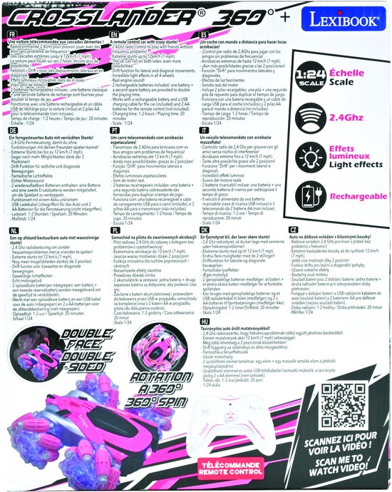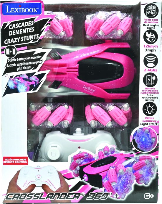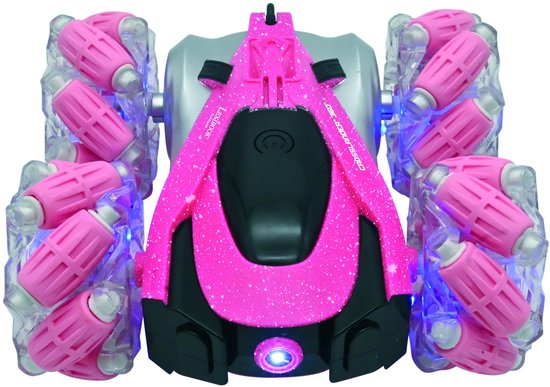 Crosslander® 360+ - Oplaadbare en programmeerbare radiogestuurde stuntroze auto met lichten.