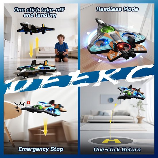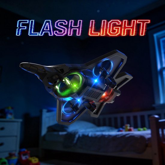 Deze kinderdrone biedt twee startmethoden (handstart of glide-start) voor afwisselende vliegervaringen. Het radiografisch bestuurbare vliegtuigje beheerst 3D-flips, automatische rotaties en basisvluchten zoals vooruit, achteruit, linksom, rechtsom, stijgen en dalen. Dankzij one-key start/landing en automatische hoogtefixatie is de bediening extra eenvoudig – ideaal voor kinderen en beginners.