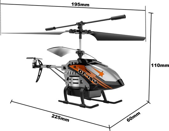 DF Models 9630 DF-180 Heli Ready to fly DF Models 2025.De DF-180 helikopter van DF Models luidt een nieuw tijdperk in voor RC-helikoptermodellen. Met een indrukwekkende vliegtijd van maximaal 22 minuten zet deze helikopter nieuwe maatstaven. Het automatische start-/landingssysteem en het hoogtestabilisatiesysteem maken vliegen eenvoudig en probleemloos. De dubbele rotors zorgen bovendien voor extreme vliegstabiliteit. Deze RC-helikopter is ideaal voor beginners in RC-modelbouw en biedt een onvergelijkbare vliegervaring. Met de DF-180 kunt u uw vliegvaardigheden leren terwijl u ten volle geniet van de vrijheid van het vliegen.Technische gegevens:Aandrijving: geborsteldRotordiameter: 195 mmLengte: 225 mmBreedte: 60 mmHoogte: 110 mmGewicht: 52 gVliegtijd: tot 22 min.Inhoud:Ready to Fly (RTF) modelhelikopter2,4 GHz-afstandsbediening3,7 Volt - 550 mAh LiPo-accuUSB-oplaadkabelHandleidingBenodigde accessoires (niet meegeleverd):3x AAA-batterijen (gebruik geen oplaadbare batterijen)USB-stekkervoeding (min. 10 watt)