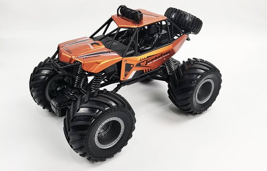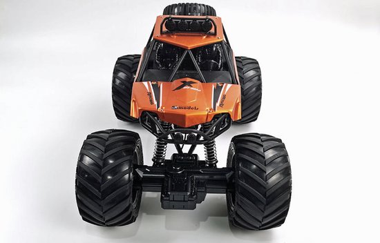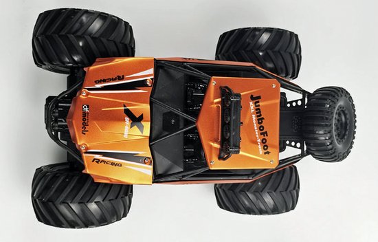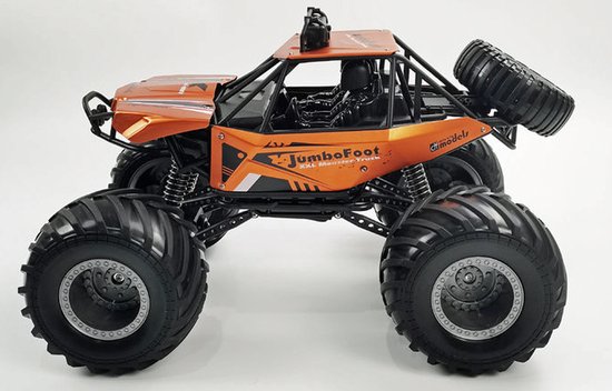 DF Models 9945 DF Jumbo Foot V2 Off-Roader 1:10 Ready to Run (RTR) DF Models Top Seller.De DF Models Jumbo Foot V2 Off-Roader 1:10 RTR is een indrukwekkende XXL-monstertruck met enorme luchtbanden op een schaal van 1:10. Met zijn metallic gelakte metalen carrosserie is dit model een echte blikvanger! Dankzij de meegeleverde LiIon-accu kun je, afhankelijk van de rijstijl en het terrein waarop je rijdt, meer dan 30 minuten ononderbroken rijplezier beleven. Met de 2,4 GHz-afstandsbediening kun je meerdere modellen tegelijkertijd bedienen zonder storing. De ingebouwde geluidsmodule en LED-verlichting zorgen voor extra actie en plezier. Gewoon uitpakken, de oplaadbare batterij opladen, de batterijen (niet meegeleverd) in de zender plaatsen en het avontuur met de RC-auto op parkeerplaatsen en paden kan beginnen! Dit model is de ideale introductie tot RC-modelbouw en is perfect voor bestuurders van 6 jaar en ouder. Trakteer uzelf en uw kinderen op een onvergetelijke RC-ervaring in XXL-formaat met de DF Jumbo Foot V2 Truck!Technische gegevens:Schaal: 1:10 Rijtijd: tot meer dan 30 minuten Aandrijving: 2WD BrushedLengte: 430 mmBreedte: 280 mmHoogte: 260 mmWielbasis: 260 mmBanden: 140x80 mmInhoud:RC-truck Ready to Run (RTR)2,4 GHz afstandsbedieningssysteemLiIon-accu - 7,4 Volt - 800 mAhUSB-oplaadkabelGebruiksaanwijzingBenodigde accessoires (niet meegeleverd):2x AA-batterijenUSB-voedingsadapter