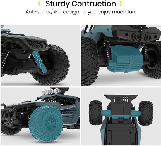 Superieur ontwerp: de RC-auto wordt geleverd met vier onafhankelijke ophangingsveren, die schade veroorzaakt door trillingen effectief voorkomen. De voorkant van de auto heeft een sterke crashbestendige bumper om de carrosserie en het frame effectief te beschermen, die niet beschadigd raken als ze tegen muren aanlopen