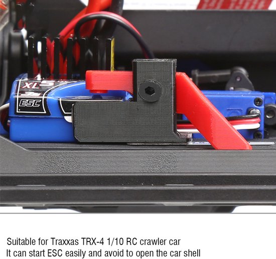 Kenmerken: 1. Gemaakt van kunststof, van hoge kwaliteit en duurzaam in gebruik. 2. Het kan ESC eenvoudig starten en voorkomt dat de carrosserie opengaat. 3. Bevestigd met dubbelzijdige tape of de schroeven. 4. Het is eenvoudig en gemakkelijk te installeren en te verwijderen. 5. Geschikt voor Traxxas TRX-4 1/10 RC crawler auto. Specificatie: Staat: 100% gloednieuw Artikeltype: RC-accessoire Materiaal: kunststof Kleur: zoals afgebeeld Gewicht: ca. 11 g Toepasselijk product: voor Traxxas TRX-4 1/10 RC crawler auto Pakketlijst: 1 * ESC Easy Start Trigger Power Switch 1 Zak met accessoires