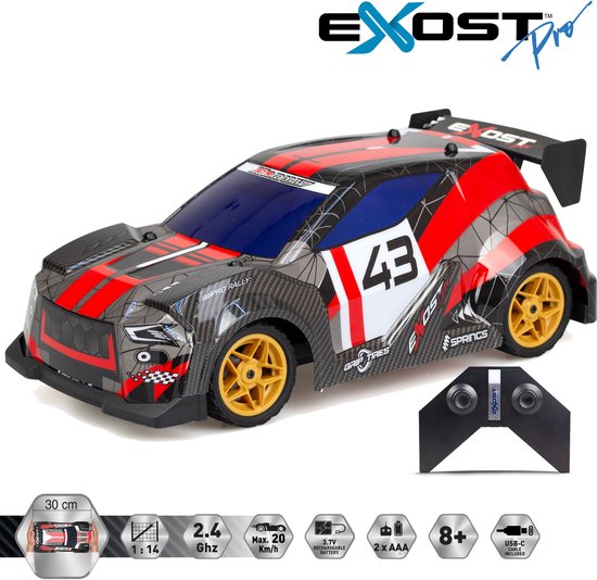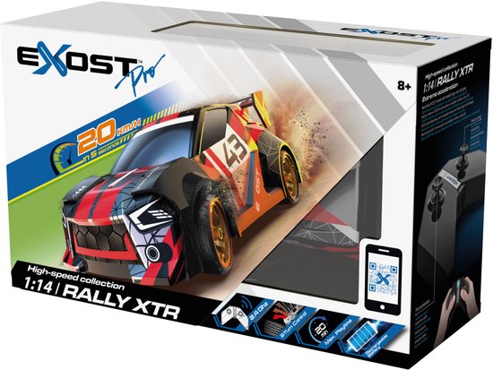 Maak kennis met de High Speed Pro collectie van Exost! De Exost PRO RALLY XTR is een op afstand bestuurbare auto met een schaal van 1:14. Dankzij de krachtige motor bereikt dit RC-voertuig snelheden tot wel 20 km/u. De 3-staps stuurtechnologie zorgt ervoor dat je soepel en nauwkeurig bochten kunt nemen. De 2.4 GHz frequentie biedt een stabiele besturing tot op 25 meter afstand. Geniet van 20 minuten rijplezier op een volle accu, die je in slechts 60 minuten oplaadt. De stoere EXOST PRO RALLY XTR geeft deze rallyauto een sportieve en robuuste uitstraling. Klaar voor actie op elk terrein!
