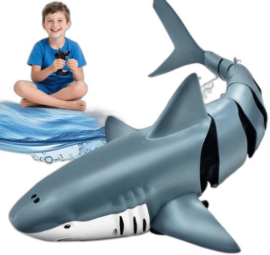 - Grote op afstand bestuurde haai: in tegenstelling tot de op afstand bestuurde haaien op de markt, heeft dit product een vergroot design dat niet alleen de haai in het water dominanter maakt, maar ook meer schokkend visueel effect brengt. Het bijzondere is dat deze RC-haai ook over een duikfunctie beschikt, die flexibel in het water kan onderdompelen en de zwemhouding van echte haaien kan simuleren, wat een nog realistischer wateravontuur mogelijk maakt