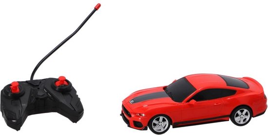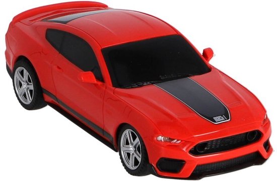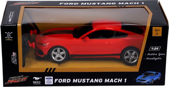 Race het huis rond met deze supergave rode Ford Mustang Mach 1! De auto met werkende koplampen heeft een afstandsbediening waarmee je met een afstand van 10 meter de auto kan besturen. De radiografisch bestuurbare auto kan vooruit, achteruit, links en rechts rijden. De auto is op een schaal van 1:24 en heeft alle details van het origineel zoals zijn kenmerkende mat zwarte lijn op de motorkap. De auto heeft rubberen banden en je kunt er zowel binnen als buiten mee rijden. De auto werkt op 2x AA-batterijen, deze zijn niet meegeleverd.